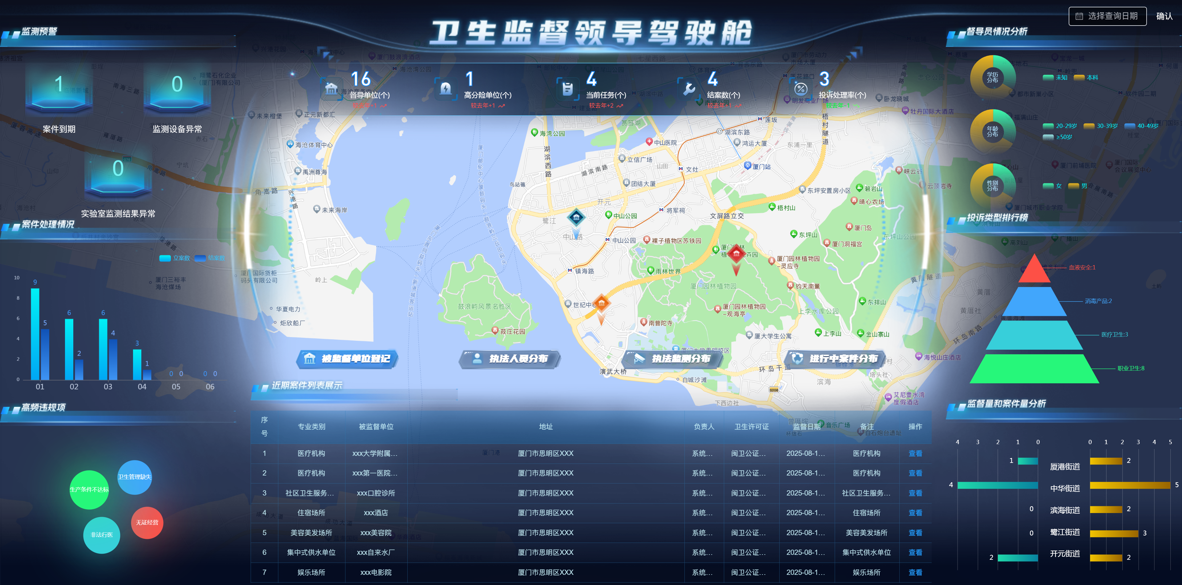 “智慧衛(wèi)監(jiān)綜合監(jiān)管服務管理系統”涵蓋監(jiān)督執(zhí)法應用、非現場執(zhí)法應用、碼上監(jiān)管、可視化駕駛艙、信息交換系統等內容,實現加強衛(wèi)生監(jiān)督綜合執(zhí)法能力建設,依法推進衛(wèi)生監(jiān)督工作,不斷創(chuàng)新衛(wèi)生監(jiān)督執(zhí)法手段,提高衛(wèi)生監(jiān)督的監(jiān)管和應急處置水平,通過建設智慧衛(wèi)監(jiān)系統,將傳統現場監(jiān)管與非現場物聯網智能監(jiān)督監(jiān)測手段相結合,解決目前衛(wèi)生監(jiān)督機構無法及時掌握和處置突發(fā)狀況的問題,做到在第一時間獲取現場數據,在事件發(fā)生、升級前提前預警和處置,提高執(zhí)法效率。